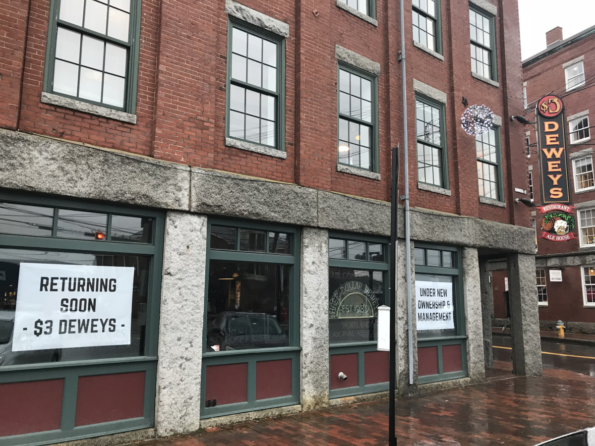 Window signs at closed Three Dollar Deweys indicate popular pub may see new life