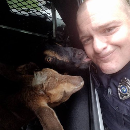 Pygmy goats bust out again, have another kiss fest with Belfast cop
