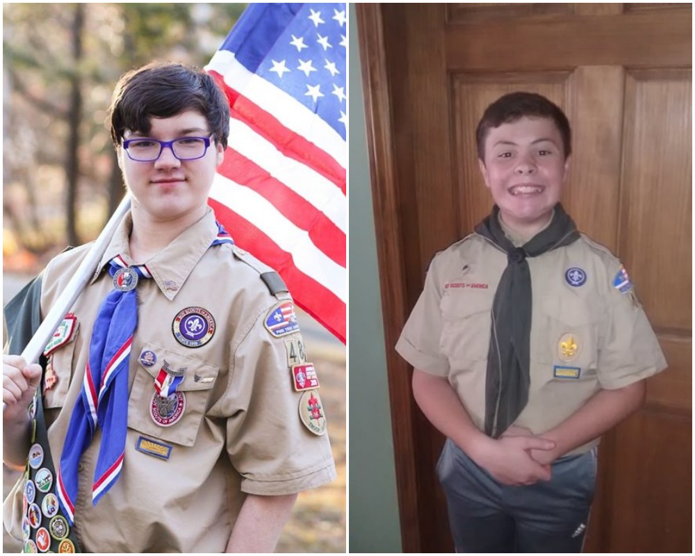 Eagle Scout Dalton Curtis of Skowhegan Troop 485, Second Class Scout Zachary LeHay of Sidney Troop 401 drew the two patch designs to be used this summer at the camp.