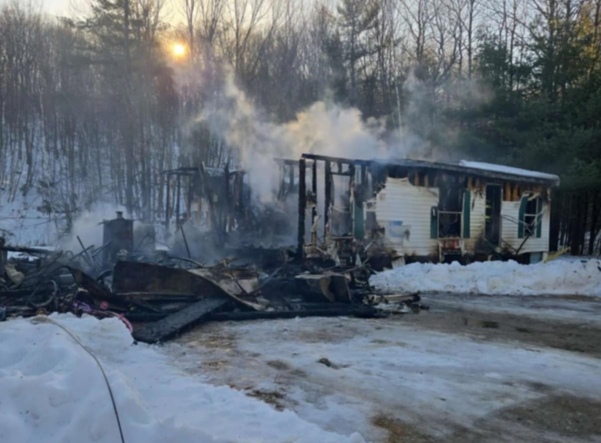 A blaze Saturday leveled most of a house and garage shortly after noon.