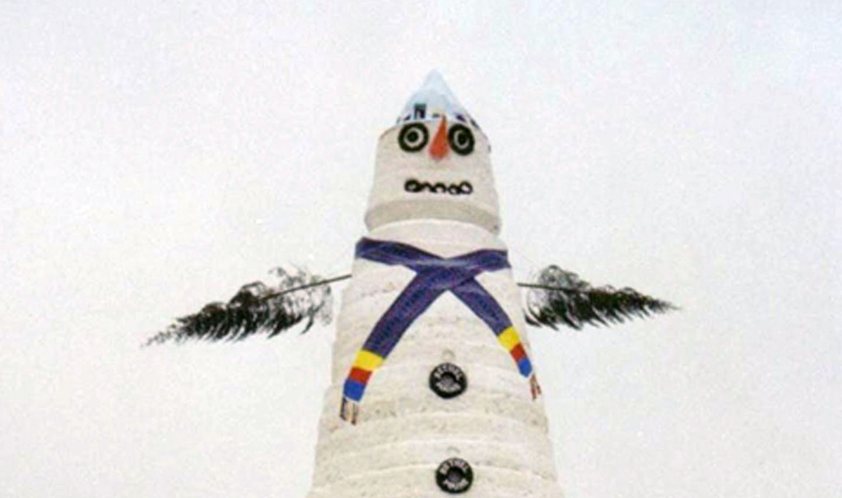 “Angus, King of the Mountain,” an at-the-time record-setting tall snowman, in Bethel will have its 20th anniversary on Tuesday, Feb. 19.