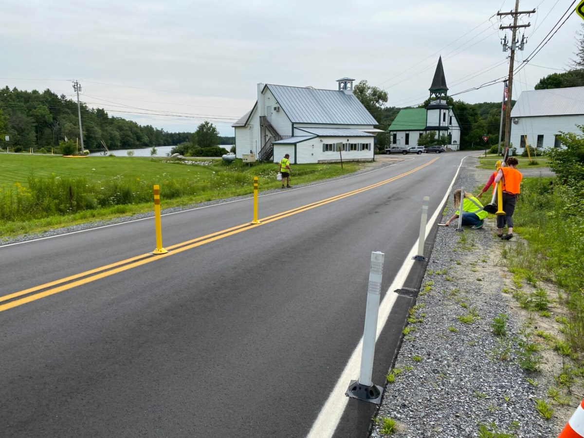 A total of 10 delineators were installed on three roads — Main Street, Belgrade Road and North Road — through a collaboration between the Bicycle Coalition of Maine and Mount Vernon’s age-friendly committee.