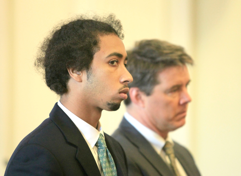 Timothy Ortiz, 20, who is accused of murder in the shooting death of Jonathan Methot, enters no plea in York County Superior Court in Alfred.