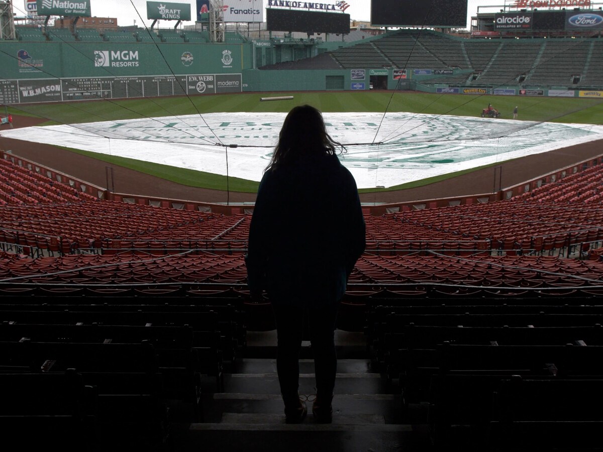 Emma Robertson, originally from South China and an L.L. Bean designer, created the layout for the tarp that’s been used at Fenway Park’s rain-delayed baseball games for the past two seasons.