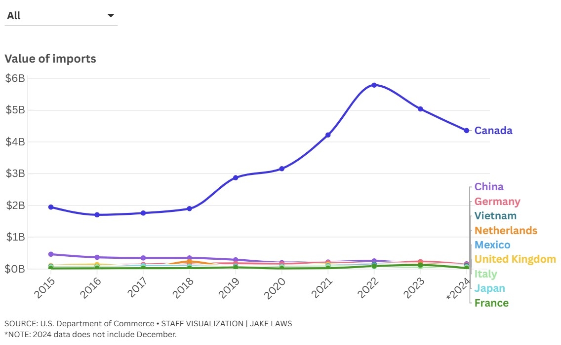 Canada imposes a 100% tariff on imports of Chinese-made electric vehicles, matching the U.S.
