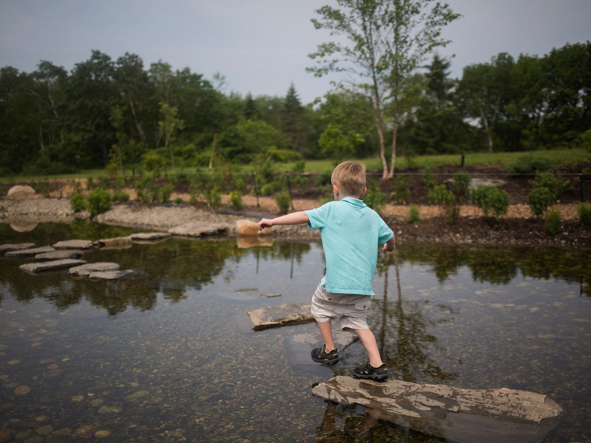 Users are mistaking the frog pond with plantings, a work in progress, for a wading pool and harming the feature that has attracted many admirers.