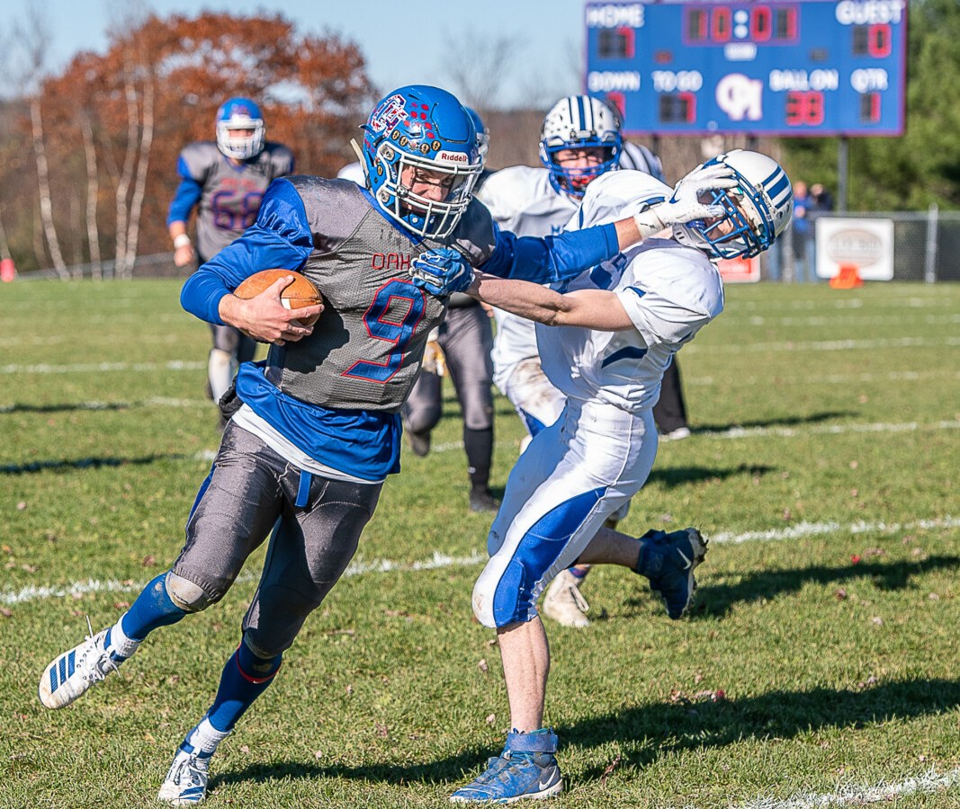 Gavin Rawstron rushes for three touchdowns and throws for two in Oak Hill’s 41-8 playoff win over Madison/Carrabec.