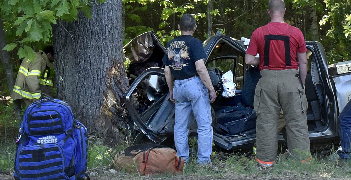 At least one person appeared to have been injured Sunday after a pickup truck struck a tree on Windsor Road in China.