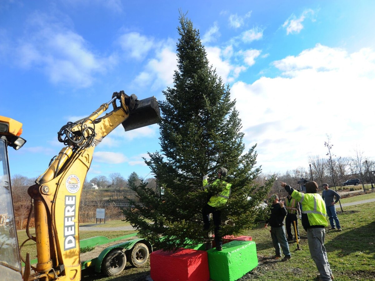 Scott and Betsy Herrick and John Watson, of Mount Vernon, donated a 27-foot-tall Fraser fir to the city of Waterville for the holiday season.