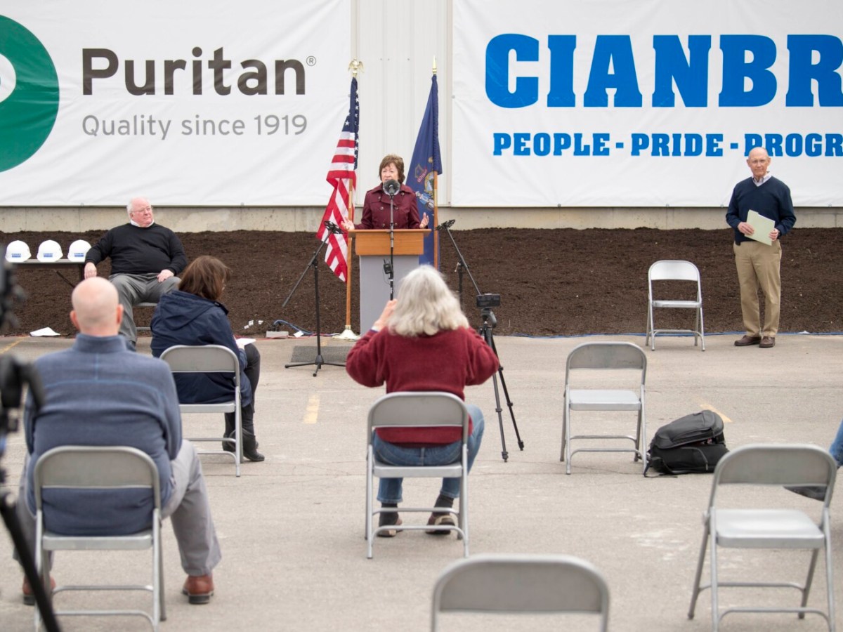 U.S. Sen. Susan Collins, R-Maine, Cianbro Corp. Chairman Peter Vigue and officials of Puritan Medical Products Co. announced that they are building a new factory to produce about 20 million more swabs and create 150 jobs.
