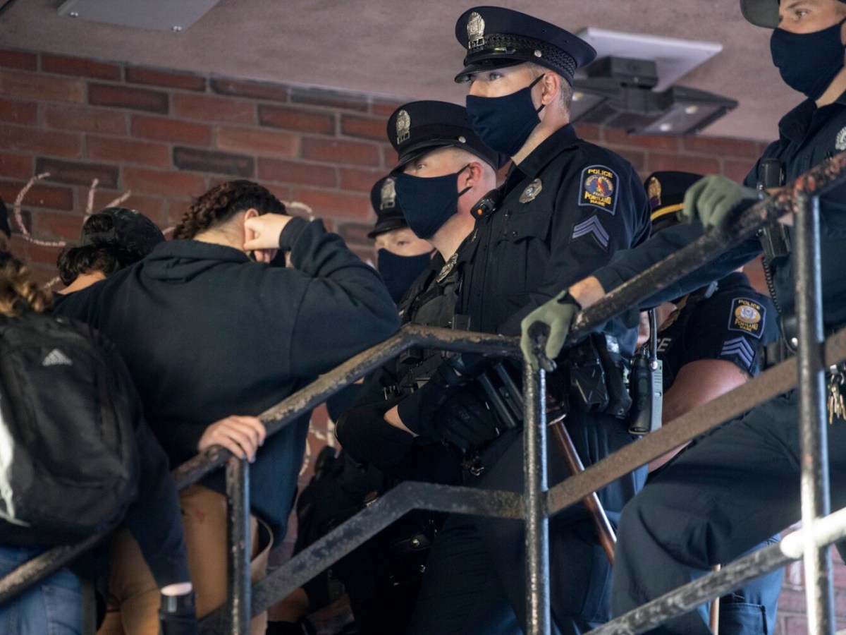 Wednesday’s protest, which was organized by Hamdia Ahmed, started at City Hall before protesters marched to the Portland police station.