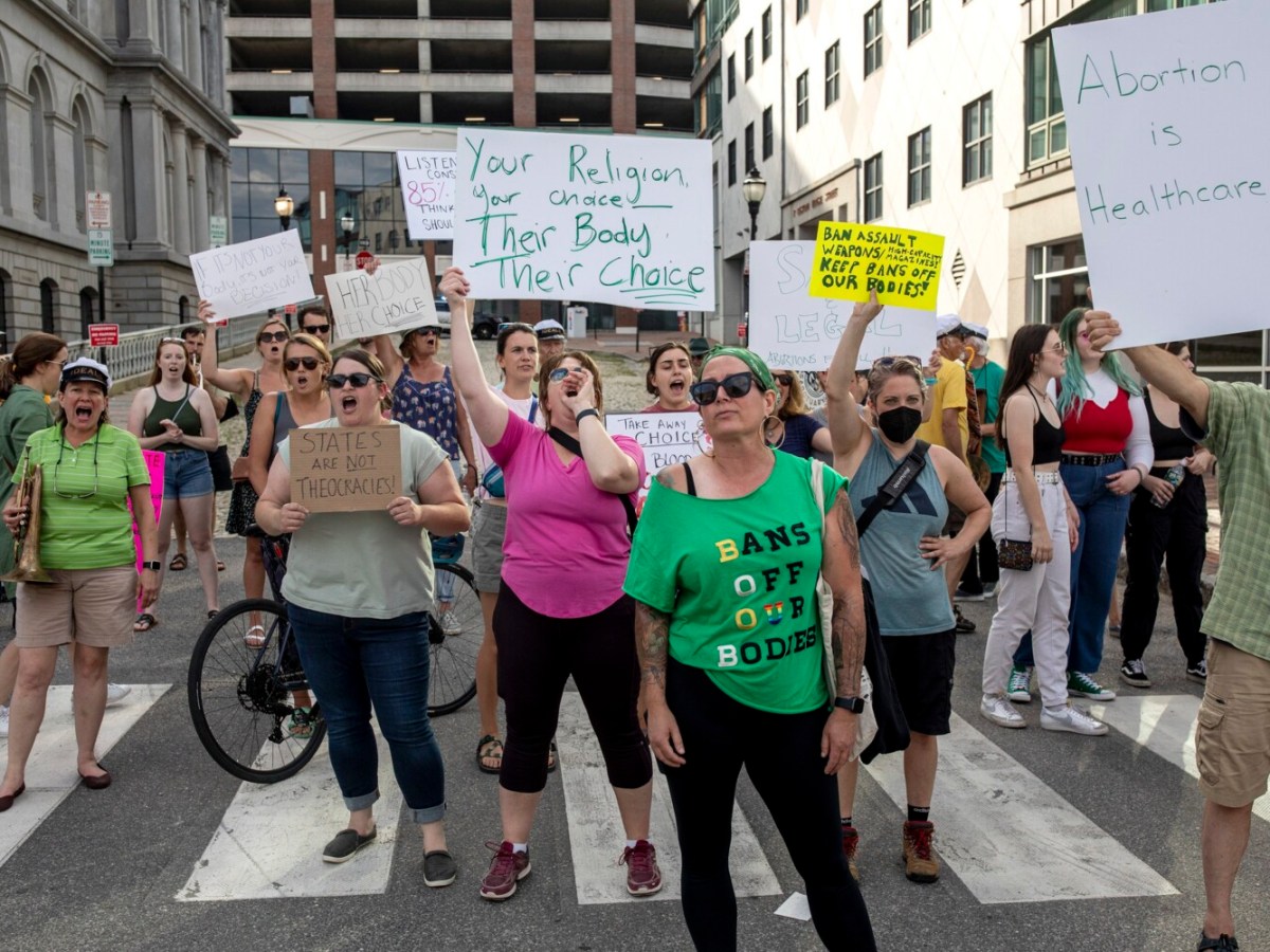 Abortion-rights protesters greet the governors, their families and staffers, as they kick off the three-day National Governors Association conference with dinner on the waterfront.