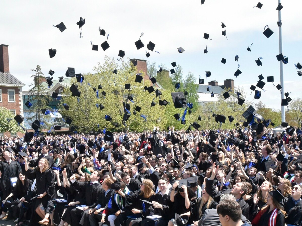 An overcast sky turned sunny as 460 Colby seniors in the class of 2019 received degrees Sunday at the college’s 198th commencement on the Miller Library lawn on the Mayflower Hill campus.
