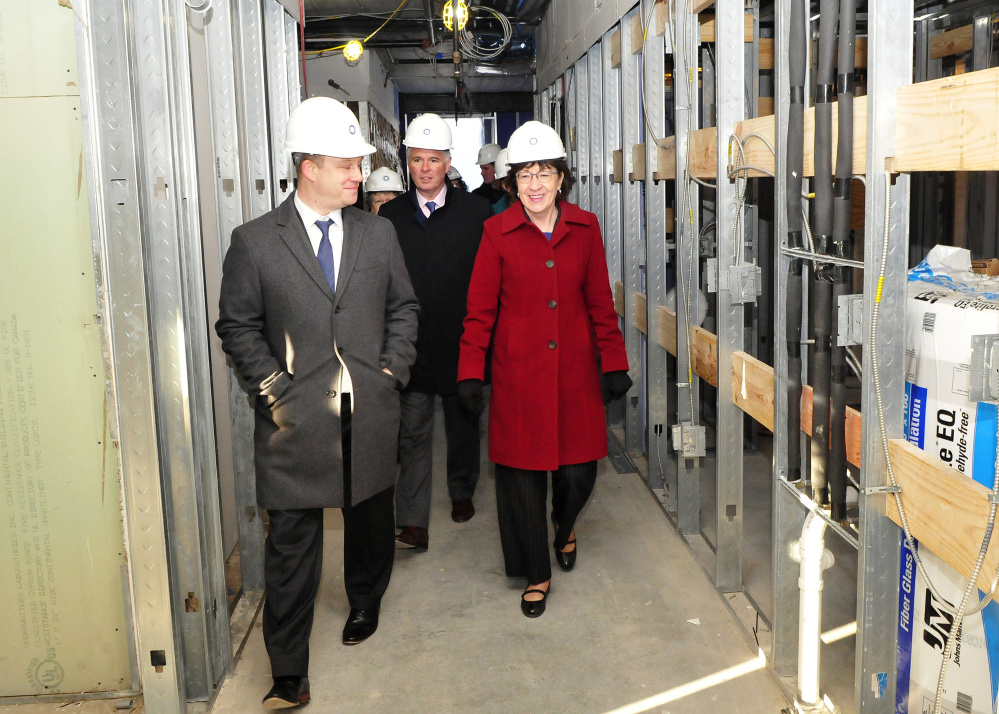 Collins gets firsthand look at new Colby buildings, downtown revitalization in Waterville