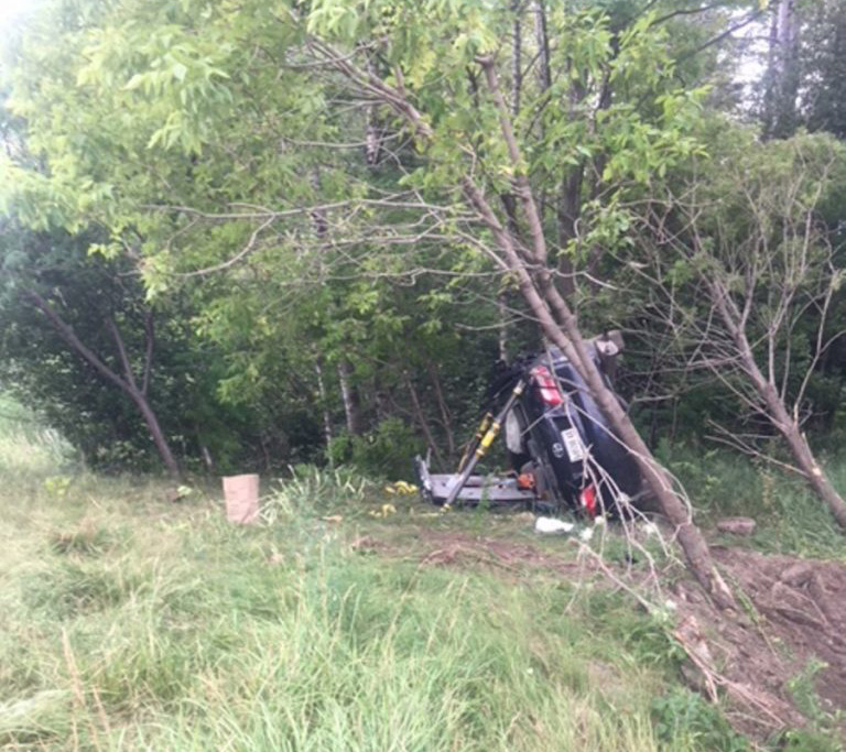 A LifeFlight helicopter has been requested after reports that two people were trapped and unconscious in the car, which was lying on its side.
