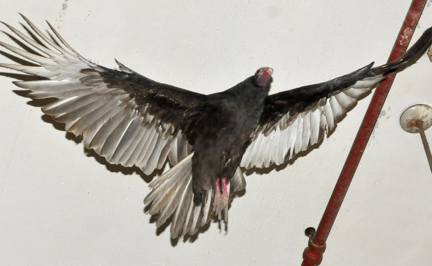 Animal Control Officer Chris Martinez, Avian Haven official rescue the agitated bird that had flown down the former Seton Hospital’s smokestack and had been trapped for days.