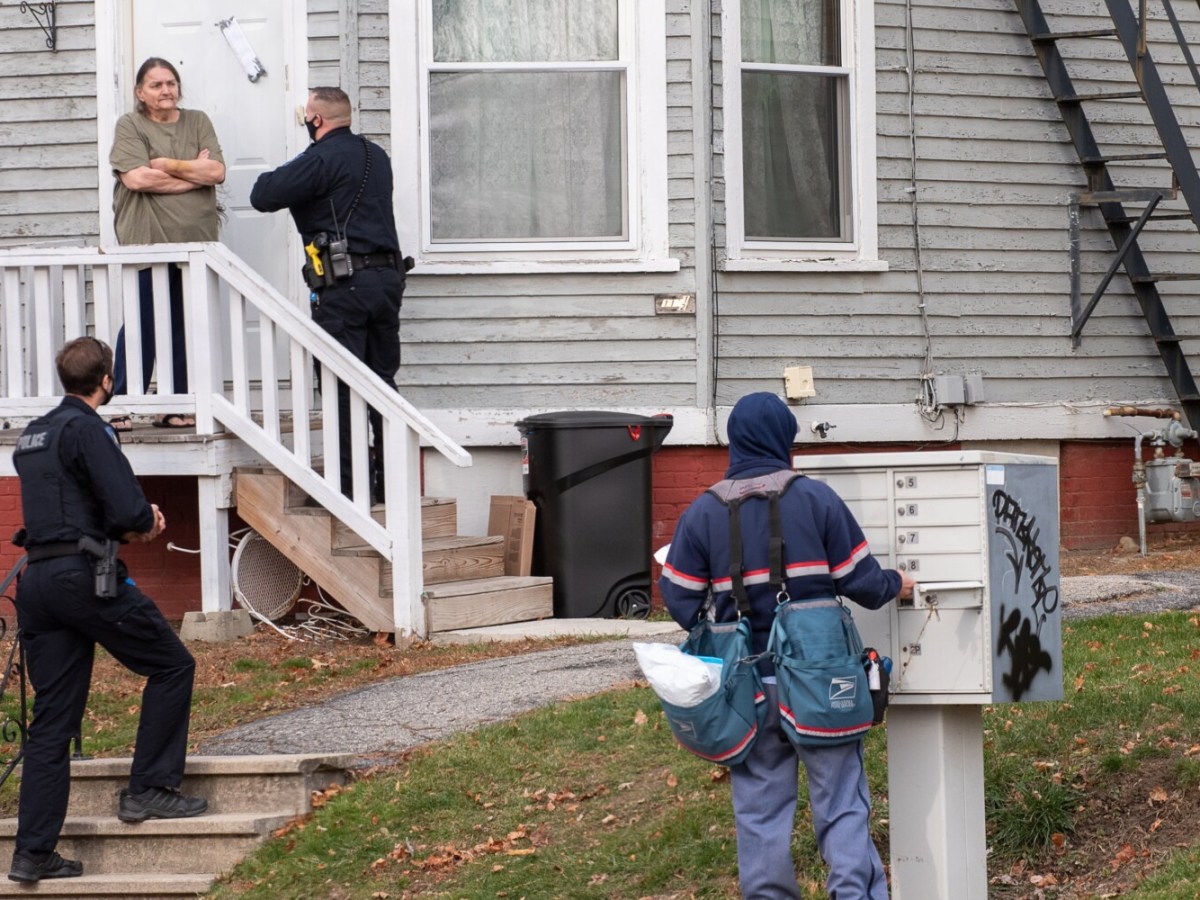 Officers were canvassing the area of Sabattus and College streets, asking neighbors to help identify surveillance photographs of a male walking across the street.