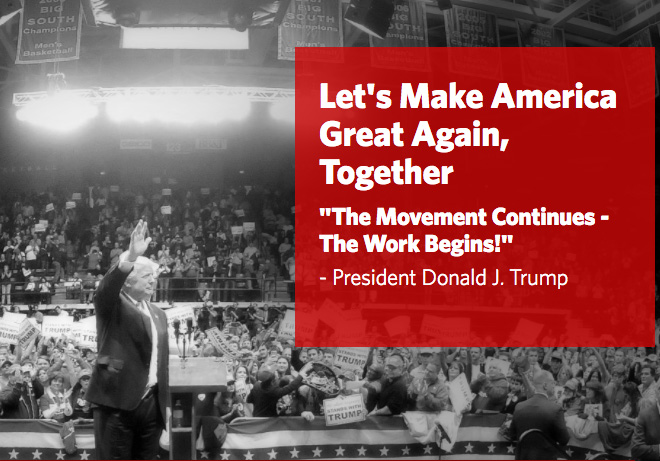As the site is remade to reflect the incoming administration, an issues page rehashes many of his most prominent campaign promises, but there is no reference to dealing with the Affordable Care Act.