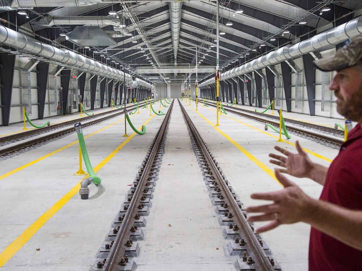The long-awaited and much-debated shed will allow the rail authority to service trains overnight and add a third daily run between Brunswick and Boston.