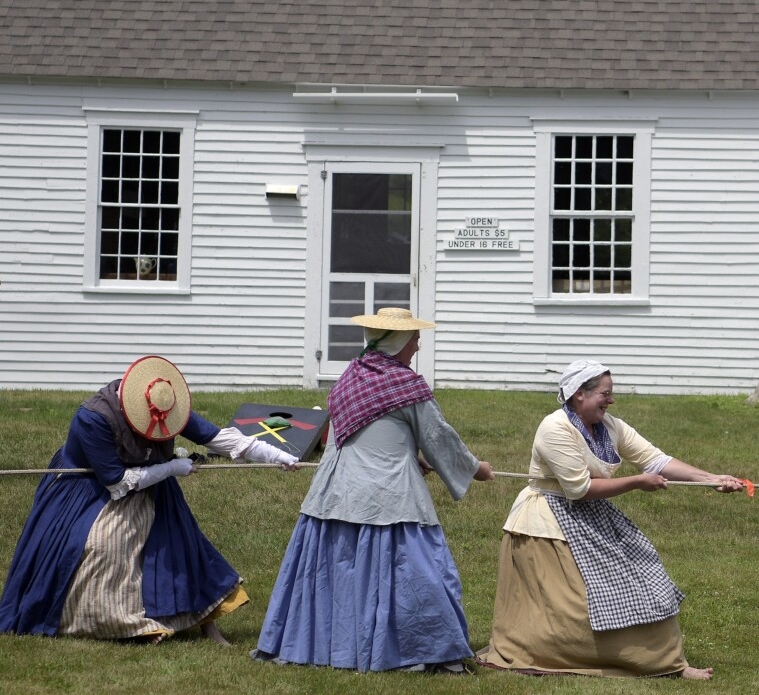 Colonial reenactors, history buffs, kids, and firefighters all in the mix for games, food and festivities Sunday.