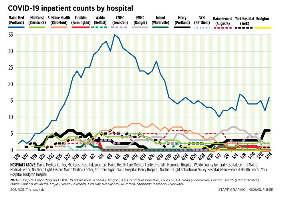 Bangor hospital reports week with most virus patients yet, but counts mostly stable elsewhere