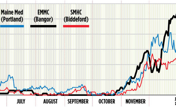 Southern Maine Health Care Medical Center Medical Center and Presque Isle’s hospital also had their biggest inpatient burdens of the pandemic.