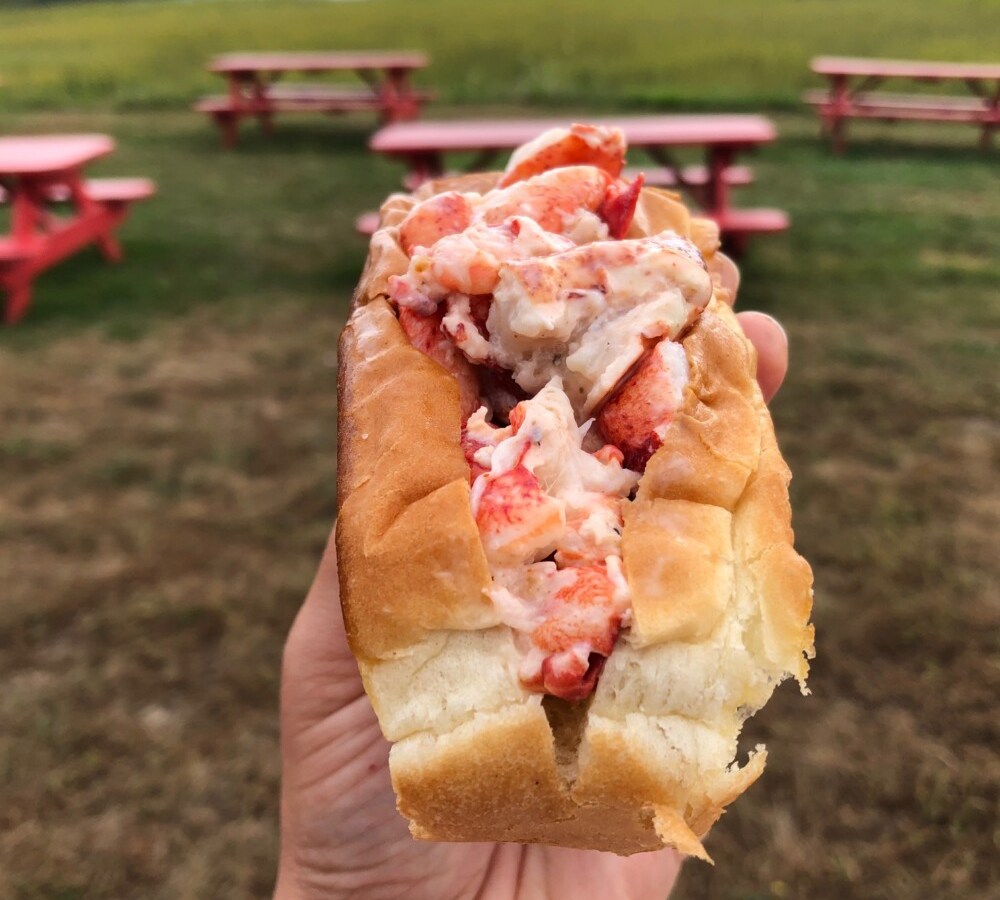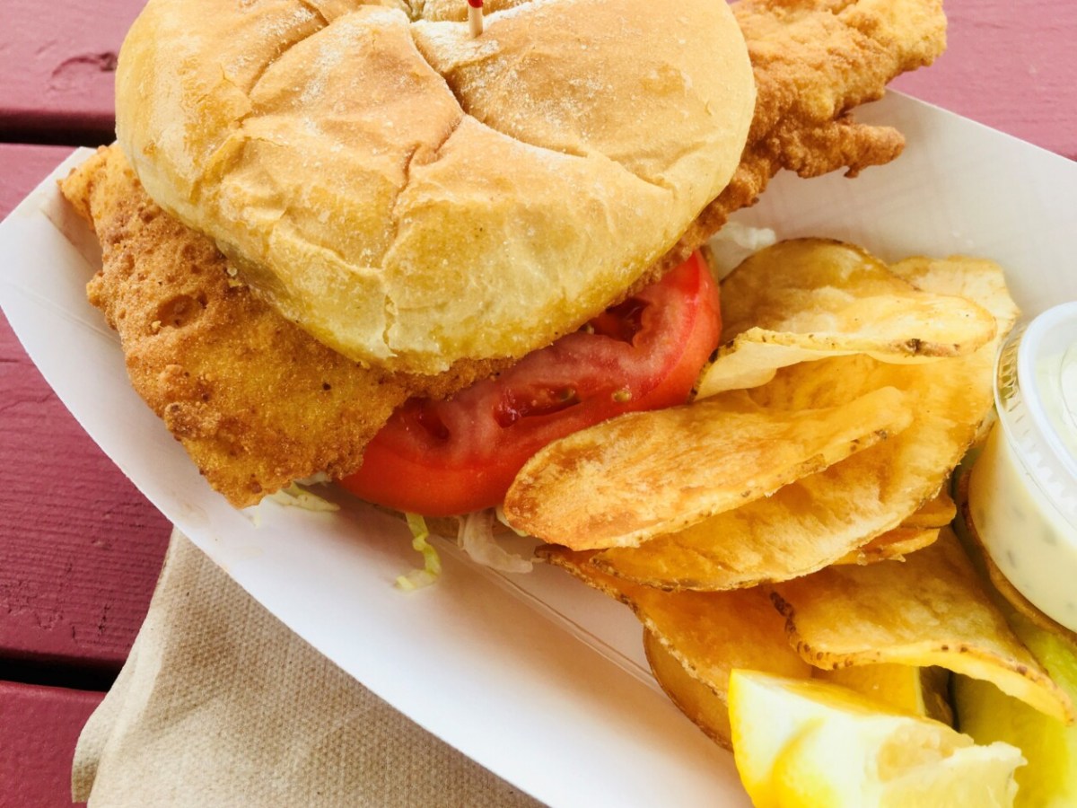 Enjoying a haddock sandwich at an outdoor table at Shore Road Restaurant provides a comfortable experience of eating in public again.