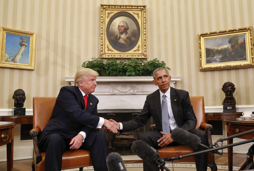 The president and the new president-elect set aside their differences, confer at length and pledge cooperation, before Trump meets with congressional leaders.