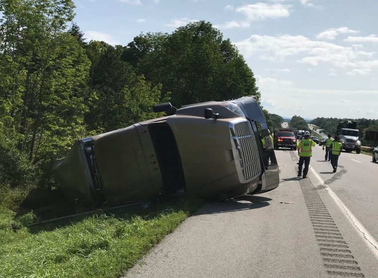 The driver of the truck may have overcorrected, causing the truck to overturn off the breakdown lane, police said.