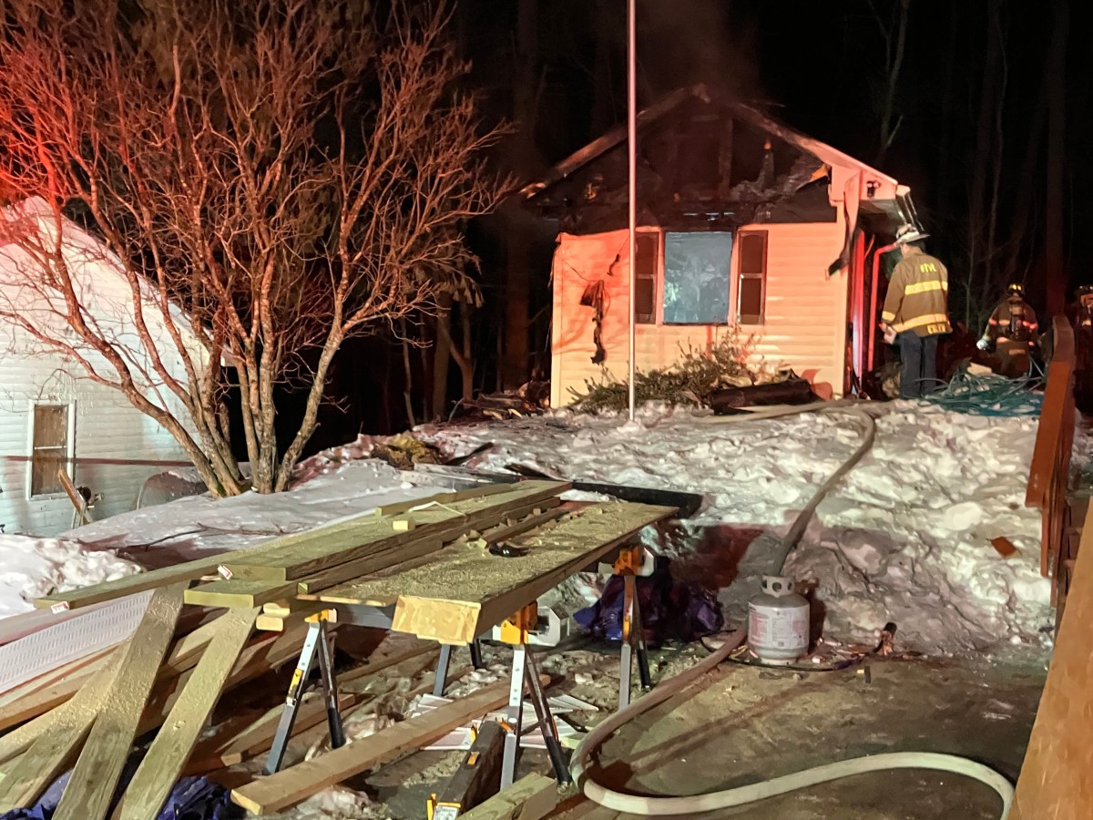 Firefighters from five communities responded early Sunday to the fire at 120 Gagnon Road, which damaged the house’s second floor and attic and left water damage throughout the home.
