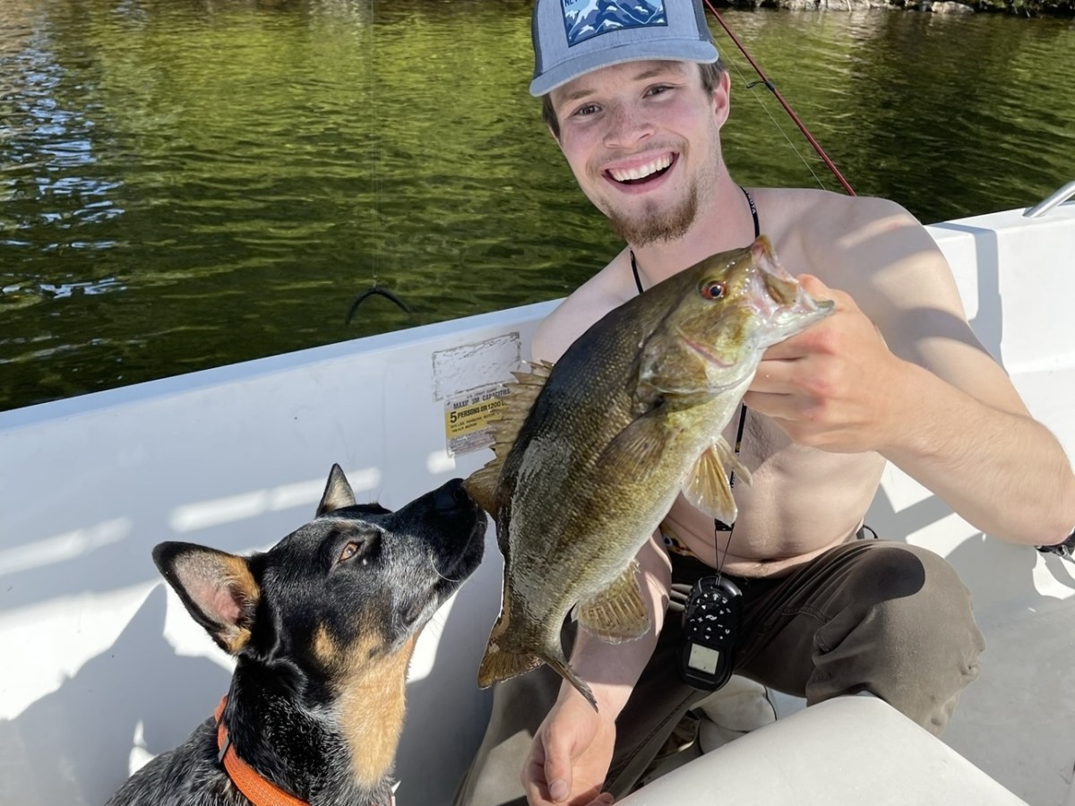 Robert Stolt was fishing on the Kennebec River near Lines Island in Bath on Sunday when he jumped into the water to rescue his dog after it had tried to retrieve a fish.