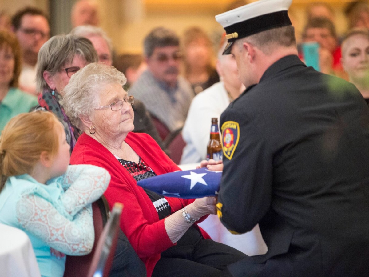 Carl McKenney, who served as Skowhegan’s fire chief for 19 years, was honored at services held Saturday
