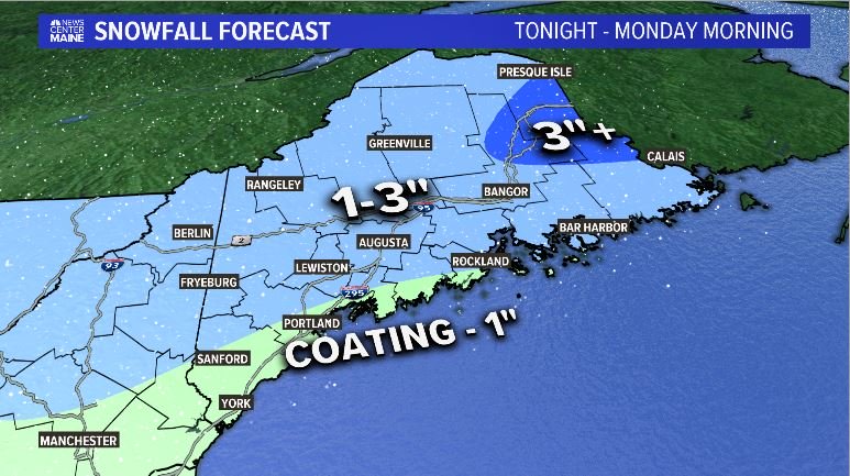 Isolated snow showers Monday, storm trends further from Maine on Wednesday
