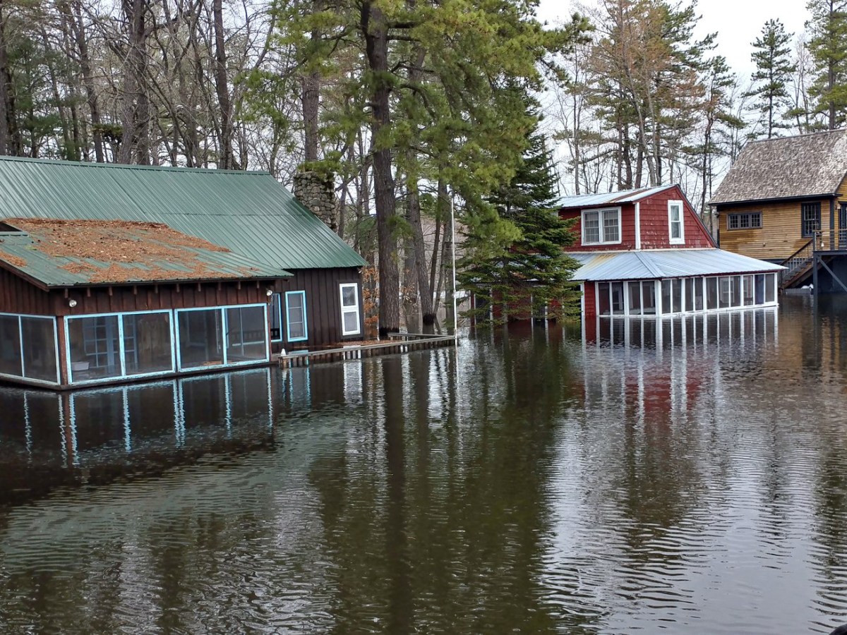Fryeburg police say the Saco River and Lovewell Pond overflowed Monday night, fed by rain and melting snowpack.
