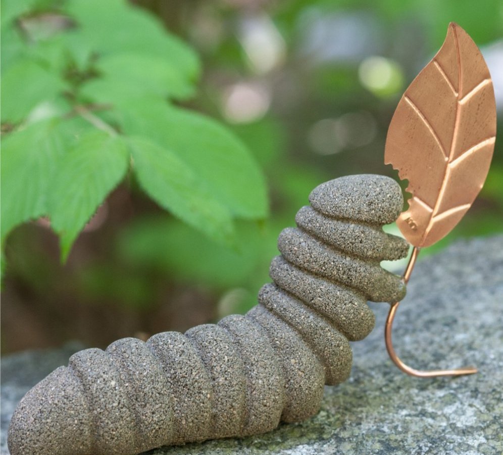 Timber Bay Home & Garden creates whimsical cast stone statuaries such as Clifford the Copper Eating Caterpillar.