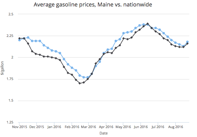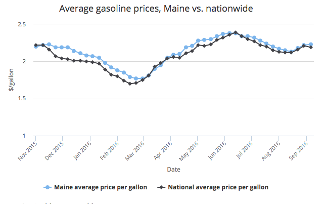 However, the average price per gallon in Maine is still 5 cents above the national average