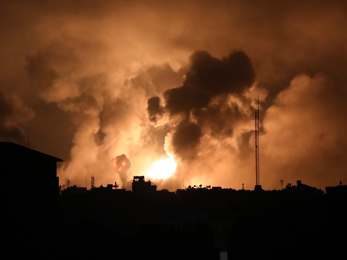 Frequent explosions from airstrikes lit up the sky over Gaza City after nightfall Friday, when an Israeli blackout of internet, cellular and landline services hit.