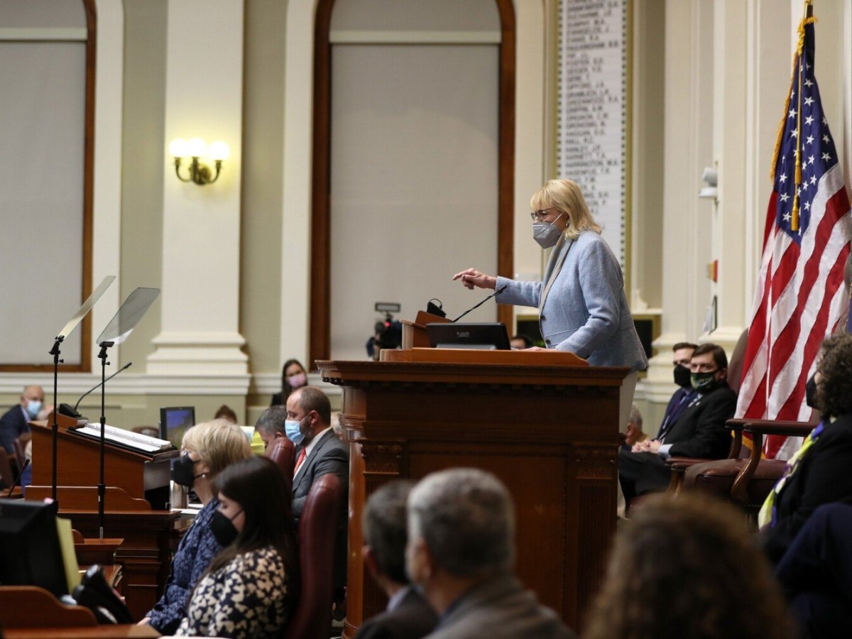 In her State of the State address Thursday, the governor touted progress the state has made in fighting the pandemic while sounding caution about the uncertainties that lie ahead.