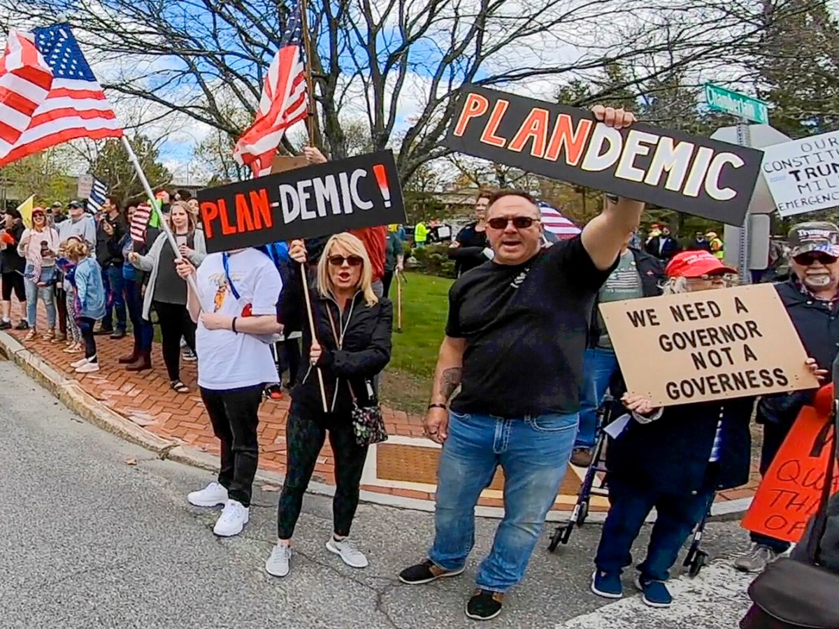People holding signs accusing Gov. Janet Mills of ruining the economy and taking away their freedoms lined the road between the Blaine House and the State House.
