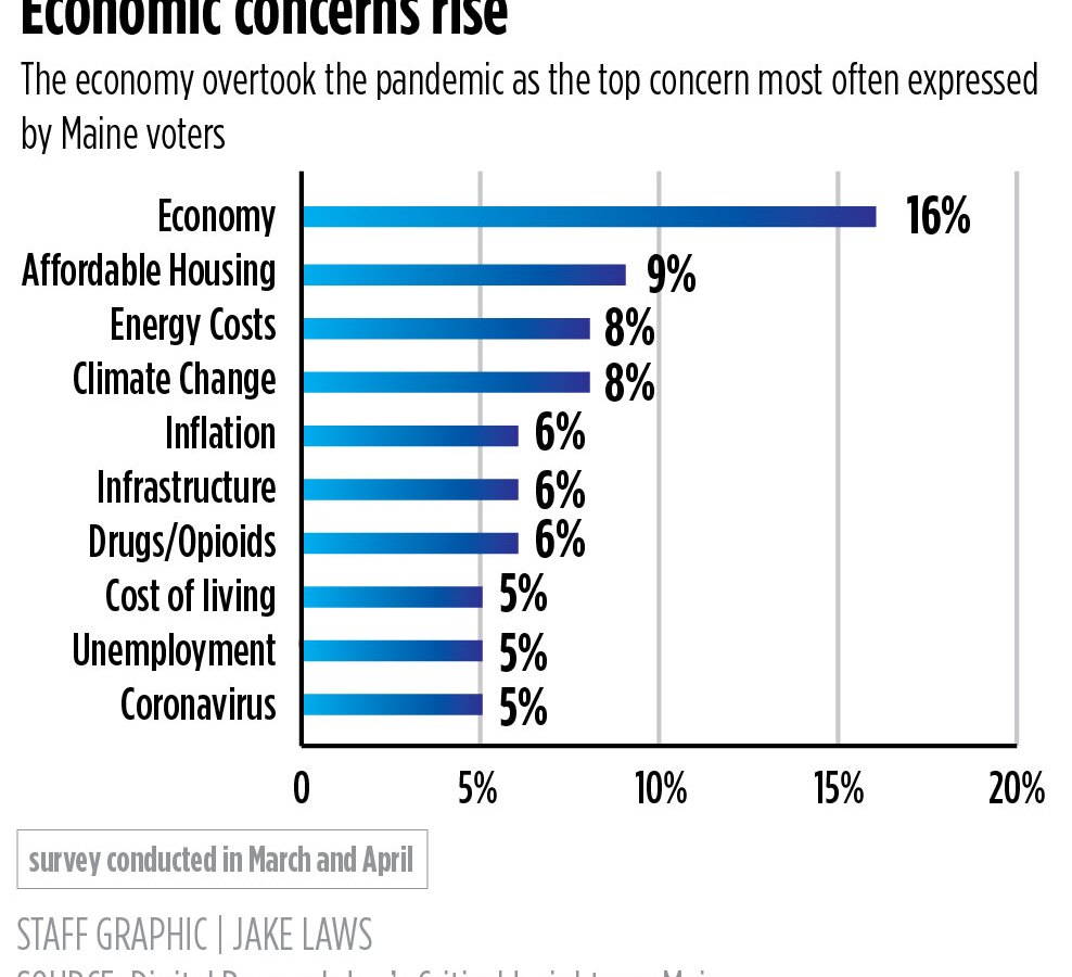Economic concerns have overtaken COVID-19 as the most important issue facing Maine for first time since the outbreak.