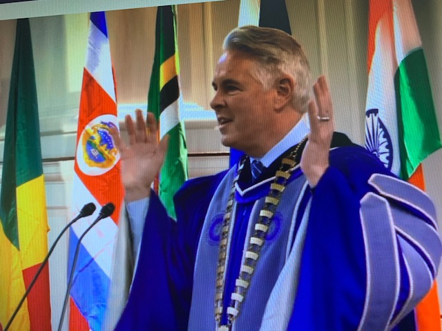Colby College President David A. Greene addresses, virtually, 493 seniors Sunday in a “Celebration of the Class of 2020.”