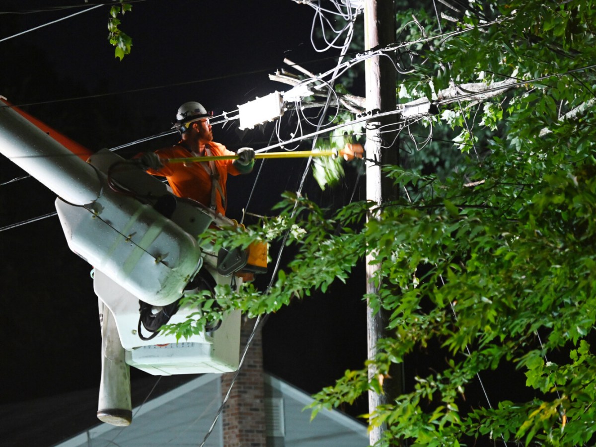 The National Weather Service said strong winds caused trees and branches to fall on power lines causing more than 28,000 electricity customers to lose power Tuesday afternoon.