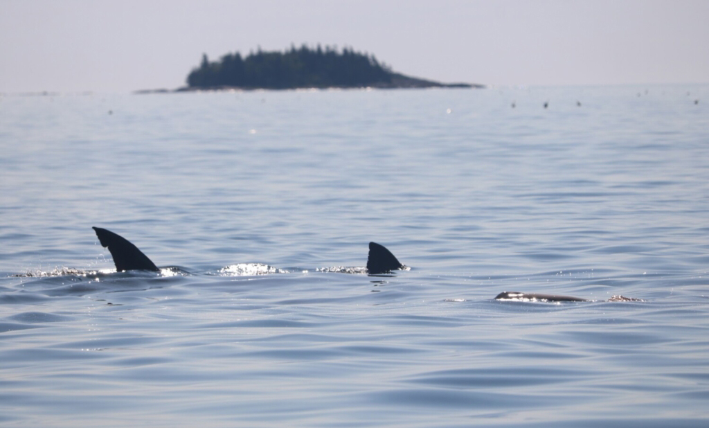 ‘If I see a fin near the surface, I always go and check it out,’ said fisherman Cory Hawkes, who spotted 10 great white sharks near Harpswell in July.