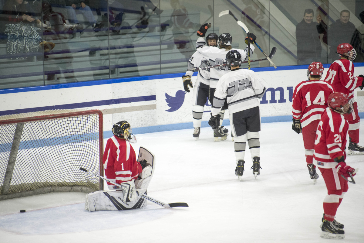 Brandon Mason hat trick powers Waterville/Winslow hockey team to win over Rams.