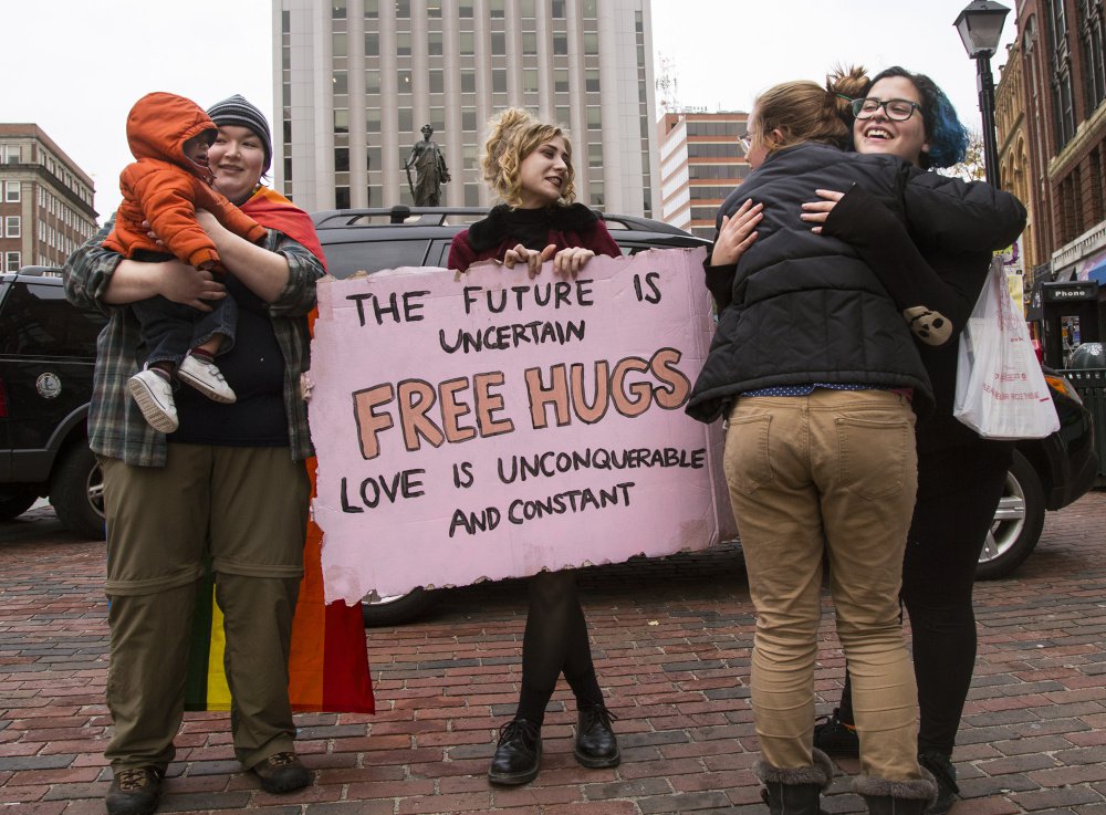 Donald Trump’s victory makes his Maine supporters happy but leaves opponents sad, angry – and in the mood for comforting hugs.