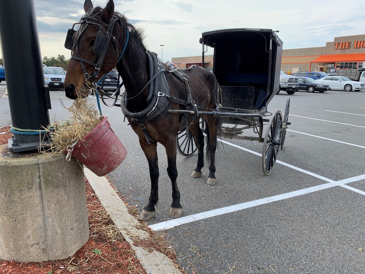 An Amish man directed his horse and buggy through Waterville traffic this week while on the way to Home Depot, and his journey was a lesson on the importance of slowing down, Amy Calder writes.