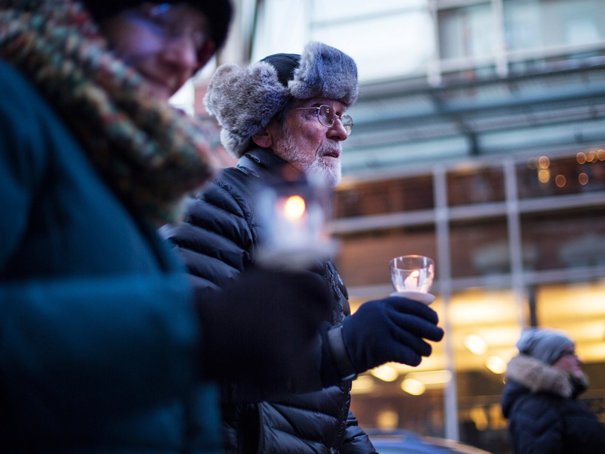 About 150 people attended the 23rd Homeless Persons’ Memorial Vigil in downtown Portland, holding candles and reading the names of the deceased aloud.