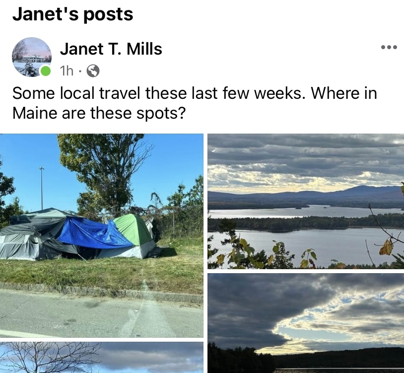 The governor removed a Facebook post that included photos of a Portland homeless encampment juxtaposed with more idyllic scenes of mountains, lakes, the coast and a county fair and words that asked “where in Maine are these spots?”