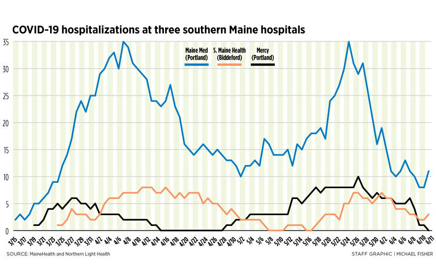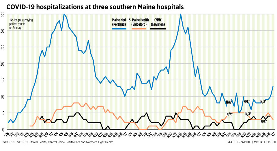 Central Maine Medical Center in Lewiston saw an uptick, although its daily patient count still averaged less than 3.