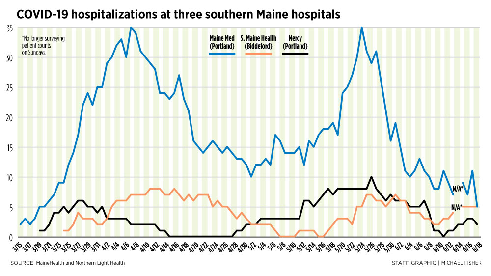 Maine Medical Center in Portland had the fewest pandemic inpatients this week since the opening days of the pandemic.